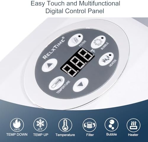 ENJOY THE WARM WATER TEMPERATURE: The RELXTIME Inflatable Hot Tub features a rapid heating system that heats the water to 104 °F, allowing you to feel the warmth of the water as you immerse yourself in the hot tub for complete relaxation in cold weather. It also comes with an easy-to-use digital control panel that allows you to conveniently adjust the water temperature and settings, making it easy to take control of your own spa experience.