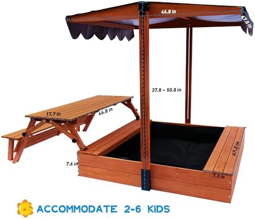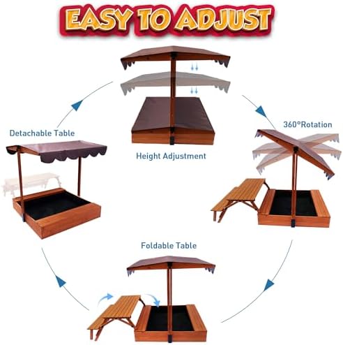 ⛱️【SANDBOX WITH CANOPY】By rotating the adjustable knob, kids can adjust the height of canopy from 37.8″ to 50.8″. The angle of the canopy can also be adjusted according to the change of sunlight. You will never worry sudden raining or ultraviolet rays when your kids playing.