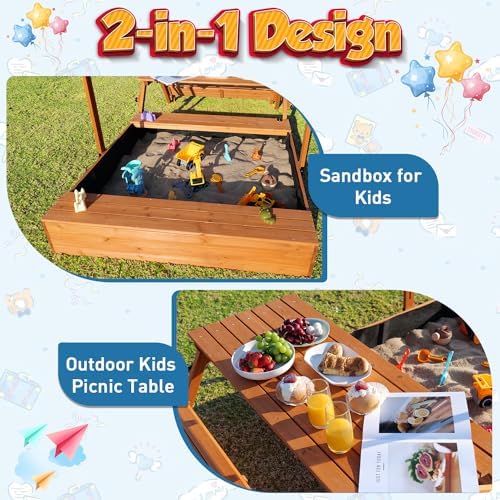 Upgraded Outdoor Sandbox with Kids Picnic Table Foldable