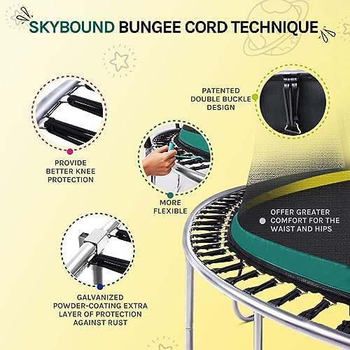 SkyBound Springfree Trampoline for Kids and Adults – Springless Trampoline with Enclosure for Indoor and Outdoor – Recreational Trampoline Bungee Cords – No Gap Design Zipper System – Variety of Sizes